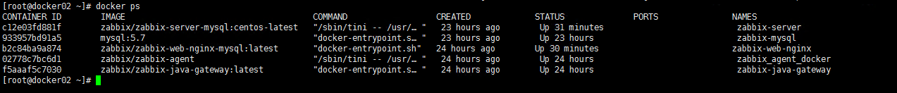 说明:docker01使用rpm方式部署agent,docker02使用docker方式一键部署zabbix-server端