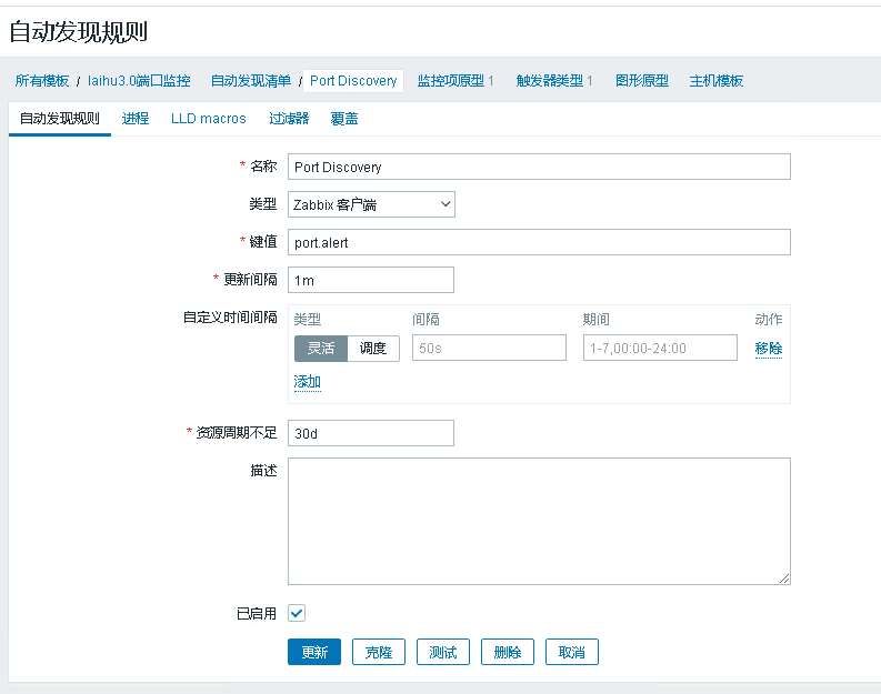 自动发现清单中新建监控项原型: