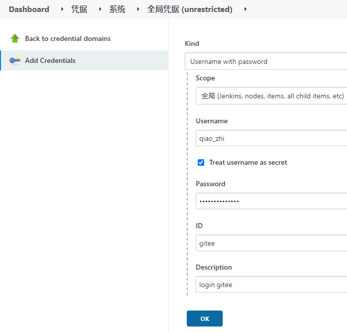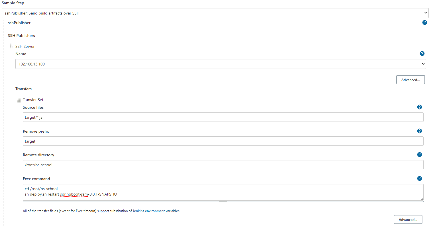 学习完k8s 之后,简单研究下,基于jenkins、gitlab、docker、k8s 实现自动部署微服务。 ## 1\. 机器规划  后来机器扛不住,就将gitlab 镜像给停掉了,采用了gitee 。不过便于学习,还是学习了下其搭建过程。 ## 2\. 组件搭建 ### 1\. 安装gitlab 1. 拉取镜像并且启动 docker pull gitlab/gitlab-ce mkdir -p /mnt/gitlab/config && mkdir -p /mnt/gitlab/logs && mkdir -p /mnt/gitlab/data sudo docker run --detach \\ \--publish 443:443 --publish 80:80 --publish 2222:22 \\ \--name gitlab \\ \--restart always \\ \--volume /mnt/gitlab/config:/etc/gitlab \\ \--volume /mnt/gitlab/logs:/var/log/gitlab \\ \--volume /mnt/gitlab/data:/var/opt/gitlab \\ gitlab/gitlab-ce 因为我在启动的时候报错22 端口已经被占用,所以我映射到了2222 端口。 查看gitlab 服务状态如下 \[root@k8smaster01 ~\]# docker ps -a | grep git e37f4c46caf6 gitlab/gitlab-ce "/assets/wrapper" About an hour ago Up 23 seconds (health: starting) 0.0.0.0:80\->80/tcp, 0.0.0.0:443\->443/tcp, 0.0.0.0:2222\->22/tcp gitlab 接下来有的需要修改配置文件, 对应于宿主机 /mnt/gitlab/config/gitlab.rb, 不修改可以访问git 但是新建仓库之后的http 地址和ssh 地址不正确: \# 配置http协议所使用的访问地址,不加端口号默认为80 external\_url 'http://192.168.13.107/' # 配置ssh协议所使用的访问地址和端口 gitlab\_rails\['gitlab\_ssh\_host'\] = '192.168.13.107' # 此端口是run时22端口映射的222端口 gitlab\_rails\['gitlab\_shell\_ssh\_port'\] = 2222 接下来正常访问宿主机的80 端口即可访问到gitlab 服务器。 启动成功之后,查看初始的账号和密码, 被挂载到宿主机的如下目录: (第一次登录之后需要修改账号密码, 修改为: qwe123123) \[root@k8smaster01 config\]# cat /mnt/gitlab/config/initial\_root\_password # WARNING: This value is valid only in the following conditions # 1. If provided manually (either via \`GITLAB\_ROOT\_PASSWORD\` environment variable or via \`gitlab\_rails\['initial\_root\_password'\]\` setting in \`gitlab.rb\`, it was provided before database was seeded for the first time (usually, the first reconfigure run). # 2. Password hasn't been changed manually, either via UI or via command line. # # If the password shown here doesn't work, you must reset the admin password following https://docs.gitlab.com/ee/security/reset\_user\_password.html#reset-your-root-password. Password: 7RLbaj2e0NSIcM6UfcQJQJRGW3xJ2J2C6b9MbqXJGVs\= # NOTE: This file will be automatically deleted in the first reconfigure run after 24 hours. 我们进入到容器查看相关的进程,可以看到一个gitlab 服务器安装的相关进程如下: root@e37f4c46caf6:/# gitlab-ctl status run: alertmanager: (pid 361) 724s; run: log: (pid 359) 724s run: gitaly: (pid 260) 729s; run: log: (pid 259) 729s run: gitlab\-exporter: (pid 355) 724s; run: log: (pid 354) 724s run: gitlab\-workhorse: (pid 316) 727s; run: log: (pid 313) 727s run: grafana: (pid 679) 585s; run: log: (pid 674) 586s run: logrotate: (pid 264) 729s; run: log: (pid 263) 729s run: nginx: (pid 336) 726s; run: log: (pid 335) 726s run: postgres\-exporter: (pid 362) 724s; run: log: (pid 360) 724s run: postgresql: (pid 314) 727s; run: log: (pid 310) 727s run: prometheus: (pid 364) 724s; run: log: (pid 363) 724s run: puma: (pid 315) 727s; run: log: (pid 312) 727s run: redis: (pid 262) 729s; run: log: (pid 261) 729s run: redis\-exporter: (pid 358) 724s; run: log: (pid 357) 724s run: sidekiq: (pid 317) 727s; run: log: (pid 311) 727s run: sshd: (pid 30) 749s; run: log: (pid 29) 749s ### 2\. 安装jenkins docker search jenkins docker pull jenkins/jenkins:lts \[root@k8smaster02 ~\]# docker images | grep jenk jenkins/jenkins lts 2a4bbe50c40b 2 months ago 441MB \[root@k8smaster02 ~\]# docker inspect 2a4bbe50c40b # 查看拉取的镜像版本, 是2.319.1 mkdir -p /mnt/jenkins/ docker run \-d --name jenkins -p 8080:8080 -v /mnt/jenkins:/home/jenkins\_01 jenkins/jenkins:lts # 启动后查看日志获取密码 \[root@k8smaster02 jenkins\]# docker logs d0f44023a64d ... Jenkins initial setup is required. An admin user has been created and a password generated. Please use the following password to proceed to installation: e0b480871a42480b876e7e18af6432b7 This may also be found at: /var/jenkins\_home/secrets/initialAdminPassword \*\*\*\*\*\*\*\*\*\*\*\*\*\*\*\*\*\*\*\*\*\*\*\*\*\*\*\*\*\*\*\*\*\*\*\*\*\*\*\*\*\*\*\*\*\*\*\*\*\*\*\*\*\*\*\*\*\*\*\*\* \*\*\*\*\*\*\*\*\*\*\*\*\*\*\*\*\*\*\*\*\*\*\*\*\*\*\*\*\*\*\*\*\*\*\*\*\*\*\*\*\*\*\*\*\*\*\*\*\*\*\*\*\*\*\*\*\*\*\*\*\* \*\*\*\*\*\*\*\*\*\*\*\*\*\*\*\*\*\*\*\*\*\*\*\*\*\*\*\*\*\*\*\*\*\*\*\*\*\*\*\*\*\*\*\*\*\*\*\*\*\*\*\*\*\*\*\*\*\*\*\*\* 2022\-02\-18 06:24:29.402+0000 \[id\=49\] INFO h.m.DownloadService$Downloadable#load: Obtained the updated data file for hudson.tasks.Maven.MavenInstaller 2022\-02\-18 06:24:29.403+0000 \[id\=49\] INFO hudson.util.Retrier#start: Performed the action check updates server successfully at the attempt #1 2022\-02\-18 06:24:29.406+0000 \[id\=49\] INFO hudson.model.AsyncPeriodicWork#lambda$doRun$1: Finished Download metadata. 401,840 ms 然后我访问8080 端口即可。第一次登录需要输入密码,密码是日志窗口提示的日志信息。 登录之后需要选择插件安装,我们选择手动安装的插件,然后清掉所有的插件即可。 然后确认后会进入创建默认用户的界面,创建一个用户 root/qwe123123 接下来安装必要的插件: Jenkins >> Manage Jenkins >> Manage Plugins (插件管理也是在这个选项卡) 这里可以看见已经安装的plugin以及可以安装的plugin。这里我们安装: Maven项目插件:Maven Integration plugin,这个插件可以让我们创建一个maven构建任务。 ssh传输工具插件:Publish Over SSH 项目打包完成后,使用这个插件,通过ssh的方式传输到远程服务器。 Gitlab插件:允许Jenkins访问gitlab服务器,拉取代码 Pipeline: 流水线插件,用于构