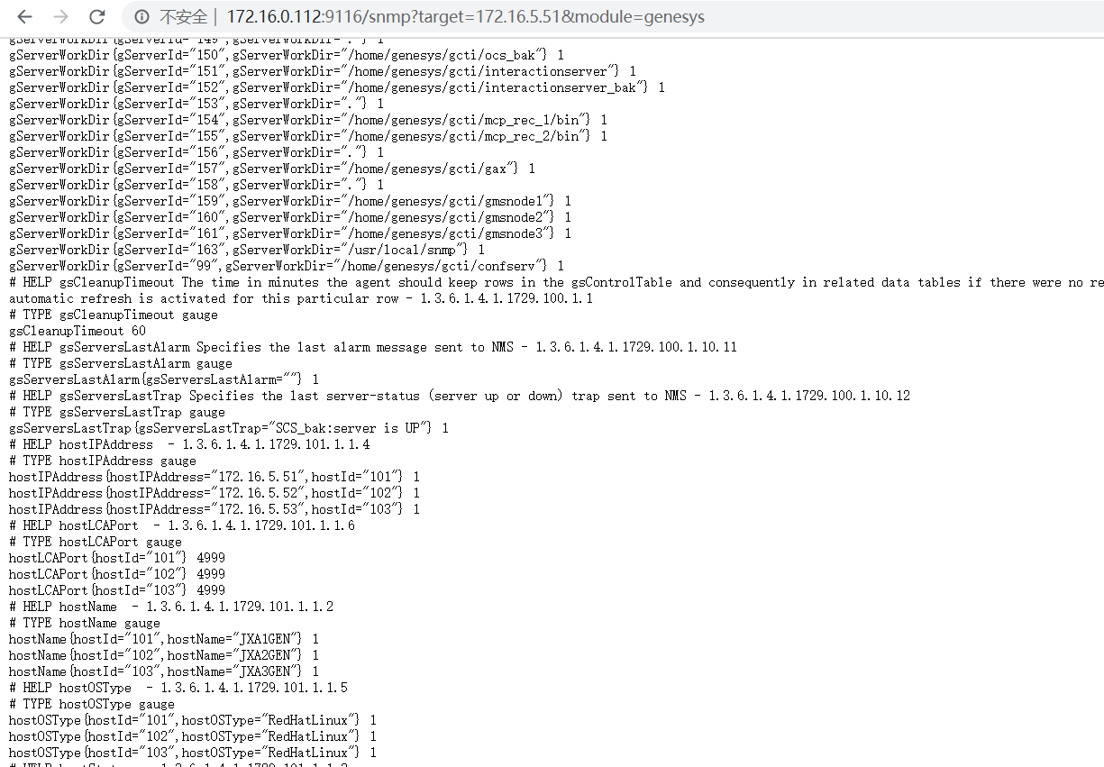gsServersLastTrap{gsServersLastTrap="MCP_2:server is UP", instance="172.16.5.51", job="genesys_snmp"}