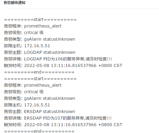 groups: - name: dol_alert_process_rule rules: - alert: Dolphinscheduler Alert ProcessDown # 告警名称 expr: (namedprocess_namegroup_num_procs{groupname="map[:alertlib]"}) == 0 for: 1m # 满足告警条件持续时间多久后,才会发送告警 labels: #标签项 severity: error annotations: # 解析项,详细解释告警信息 summary: "dolphinscheduler Alert {{ $labels.instance }} has been down for more than 1 minutes" description: "dolphinscheduler Alert has been down, This requires immediate action!" |